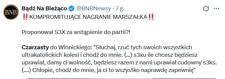 Tymczasem w mediach społecznościowych Włodzimierz Czarzasty opublikował nagranie, słowa skierowane do Roberta Winnickiego z Ruchu Narodowego….