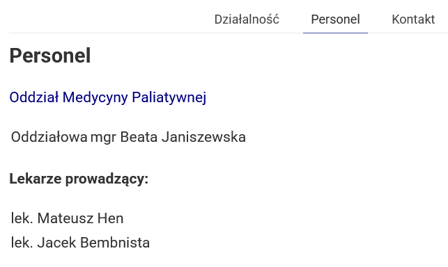 - Jacy lekarze i w jakiej ilości świadczonych godzin…. świadczą opiekę lekarską w Oddziale Medycyny Paliatywnej w okresie: – od 01.01.2025r. – do 31.12.2025r…… od 01.01.2026r. – do 31.12.2026r……. ODPOWIEDŹ: